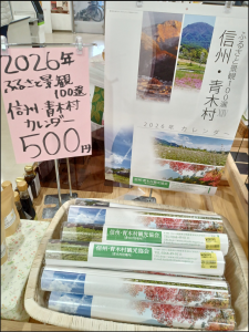 直売所には、毎年恒例の『信州青木村ふるさと景観100選カレンダー 2026年』の販売を開始!