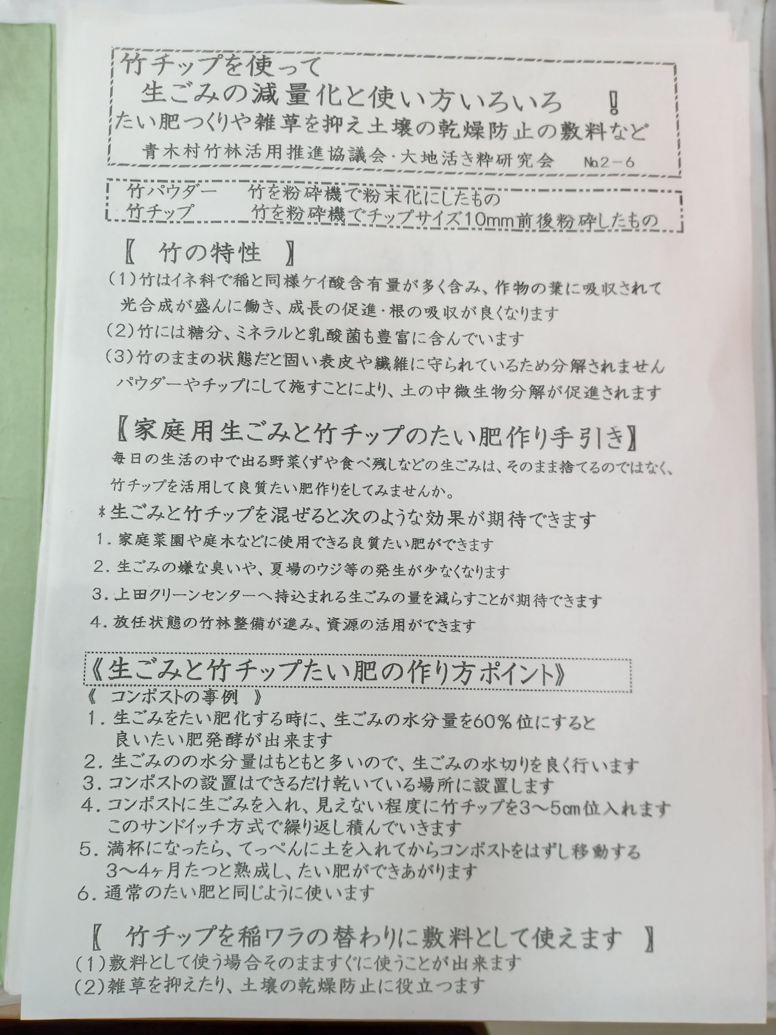 家庭用の生ごみと竹チップを合わせることで、生ごみの減量と良質な堆肥作りを目指してみませんか。