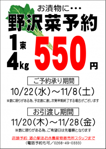 令和7年10月22日(水)より 野沢菜ご予約のご案内