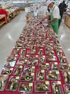 ・明日10/27(月)の松茸の販売につきまして、雨により入荷が見込めない状況です。また、松茸の入荷もほぼ終了の時期となる見込みです。皆様には、ご迷惑をおかけしいたしますが、ご了承ください。
